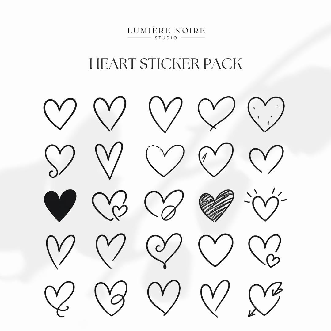 From clean outlines to decorative doodles, this pack offers a variety of heart styles — minimalist, romantic, cute, or bold.