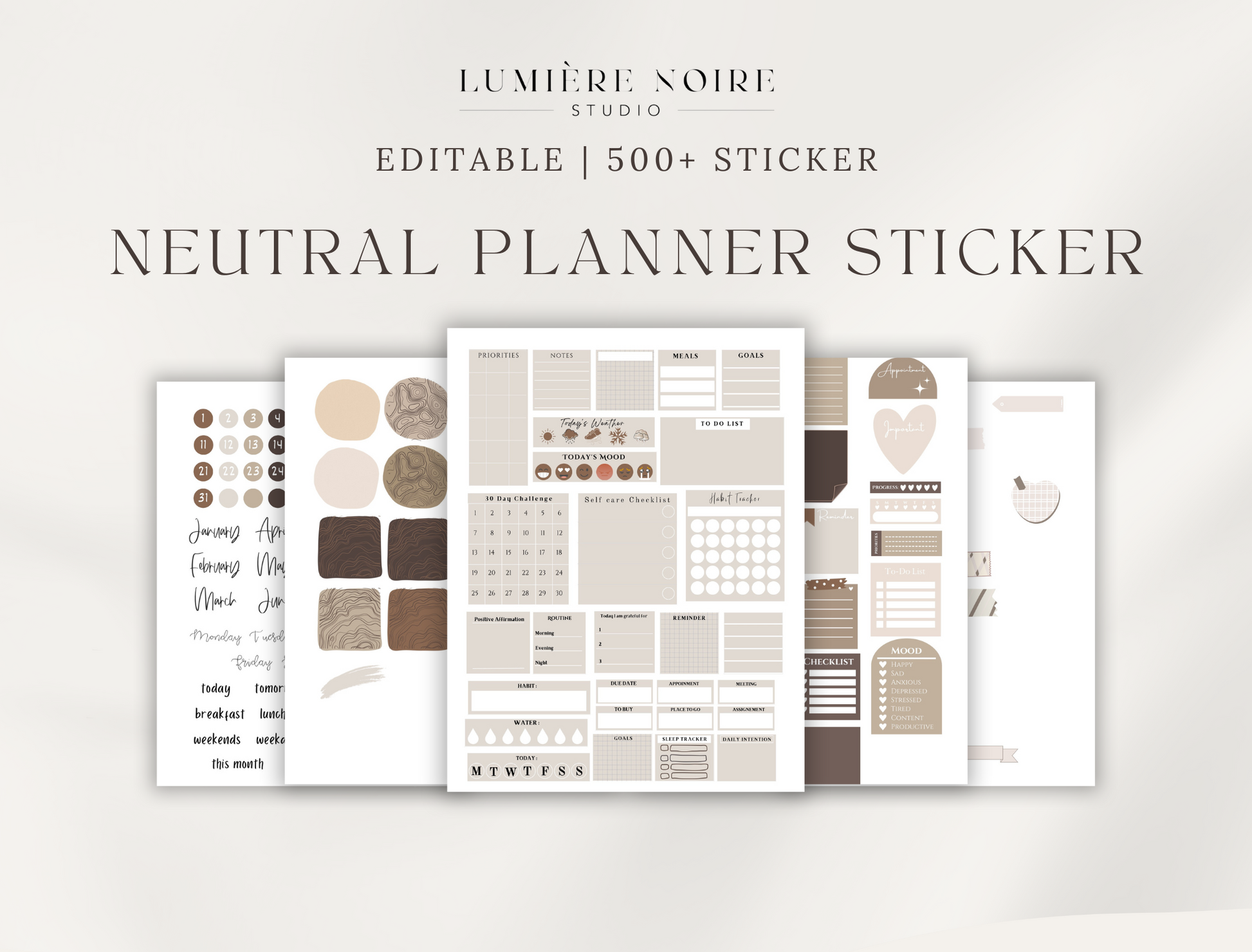 Transform your digital planning experience with this extensive sticker set, featuring over 500 beautifully designed stickers! Perfect for customizing your planners, notebooks, or any digital documents, these stickers are designed to work seamlessly in Canva.