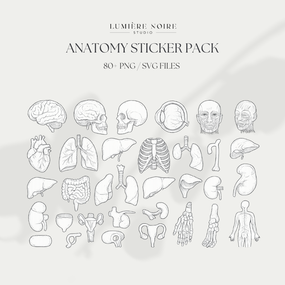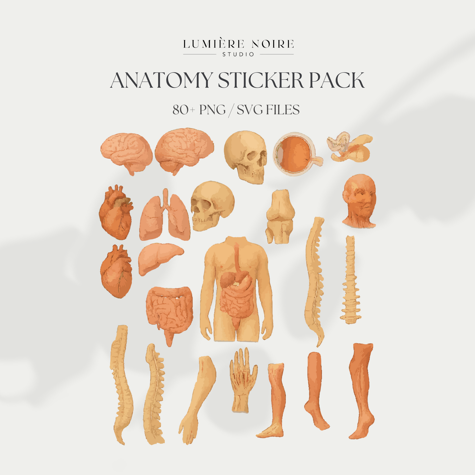 Bring the beauty and precision of human anatomy to your digital or printable projects with this stunning collection of 84 high-quality anatomy stickers! Whether you're a medical student, teacher, therapist, science enthusiast, or digital planner lover – this bundle is perfect for educational use, journals, printables, or creative design.