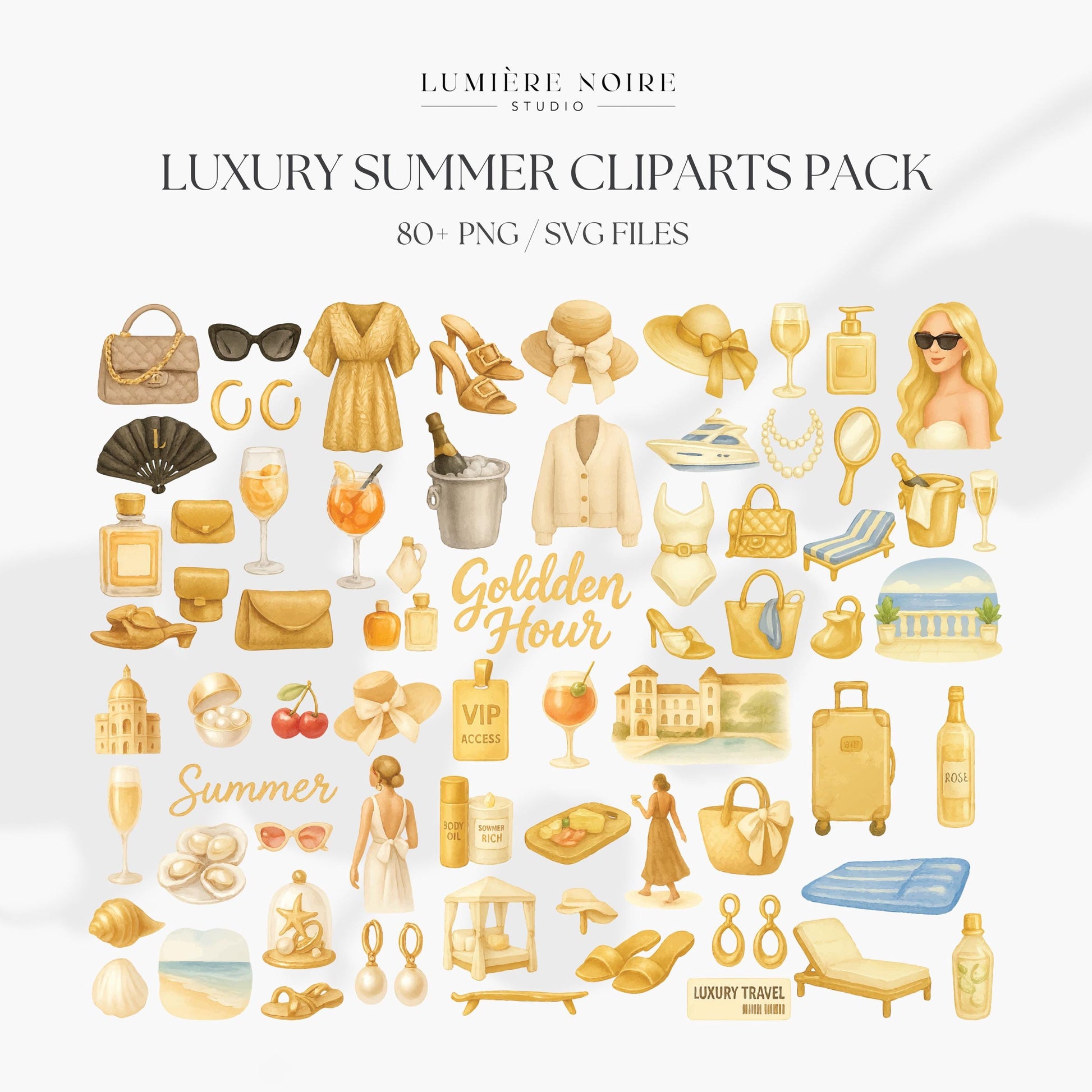 Luxury Summer Cliparts Pack | 80+ PNG & SVG Files | Elegant Digital Download with Master Resell Rights