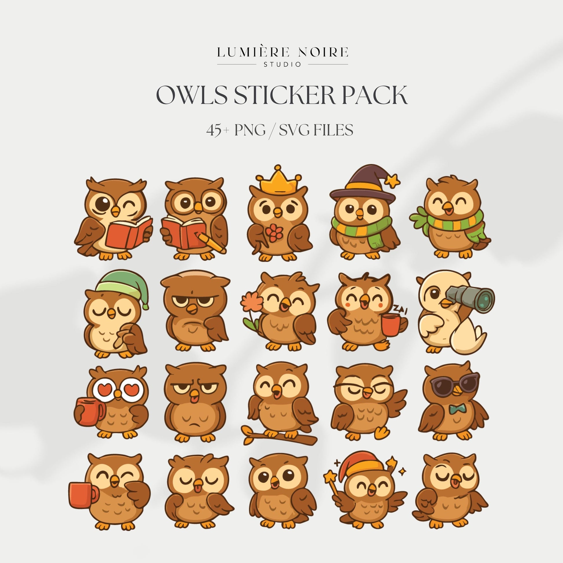 Owls Sticker Cliparts | 45+ PNG & SVG | Cartoon Style – Digital Download | Master Resell Rights