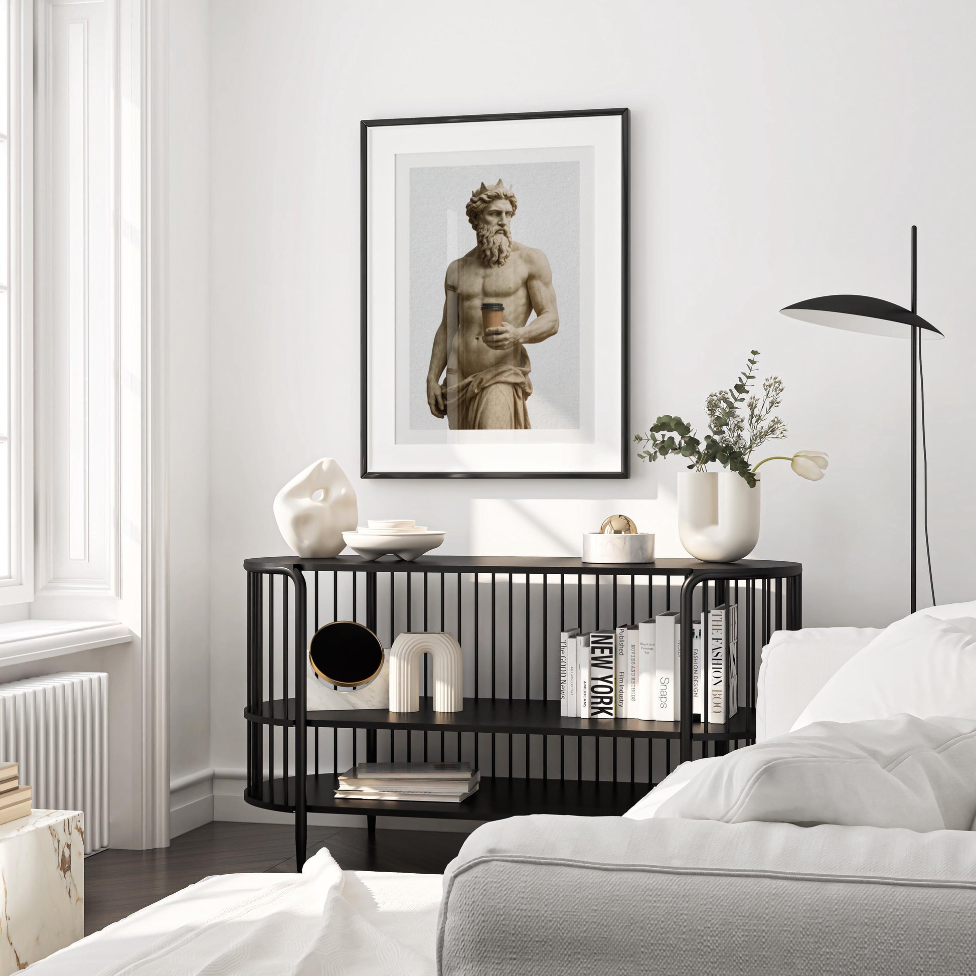 Poseidon meets coffee culture in this bold digital poster. Greek god art with a twist – perfect for modern spaces. Aesthetic, printable & iconic!